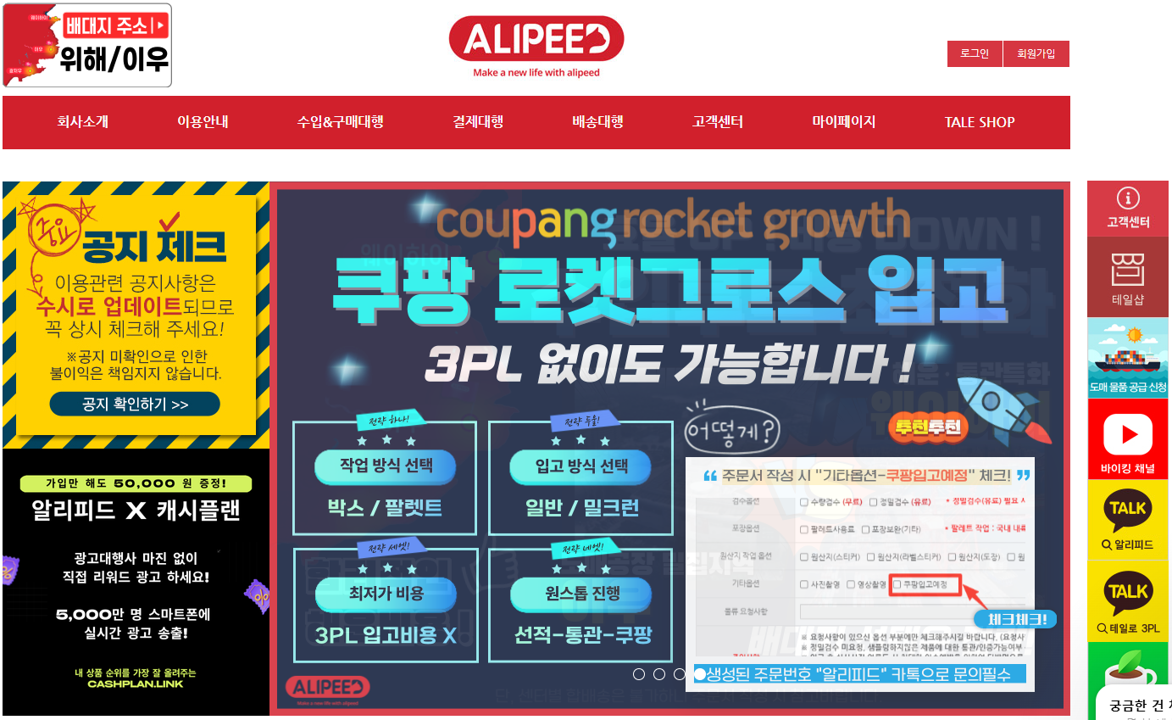 미신청 입고 상품 자동 알림 및대행 신청 시 즉시 자동 입고 처리됩니다.